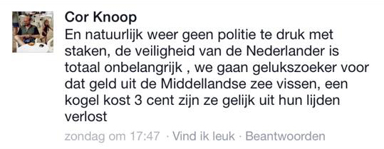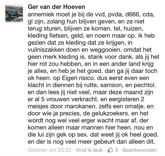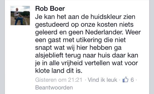 Wij vinden racistische comments en de mensen die ze achterlaten walgelijk. Deze vreemdelingenhaat kan niet zichtbaar genoeg zijn, zodat elke werkgever en schoonvader weet met wat voor teringlijer (m/v) ze te maken hebben. En elke teringlijer (m/v) hopelijk leert dat het niet normaal is om dit soort shit uit te kramen.