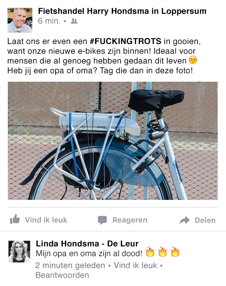 Wat nou als lokale middenstanders hetzelfde zouden doen? Toevallig ontdekten we een ambitieuze fietsenmaker die op deze manier viral succes probeerde te bereiken. Inspirerend!